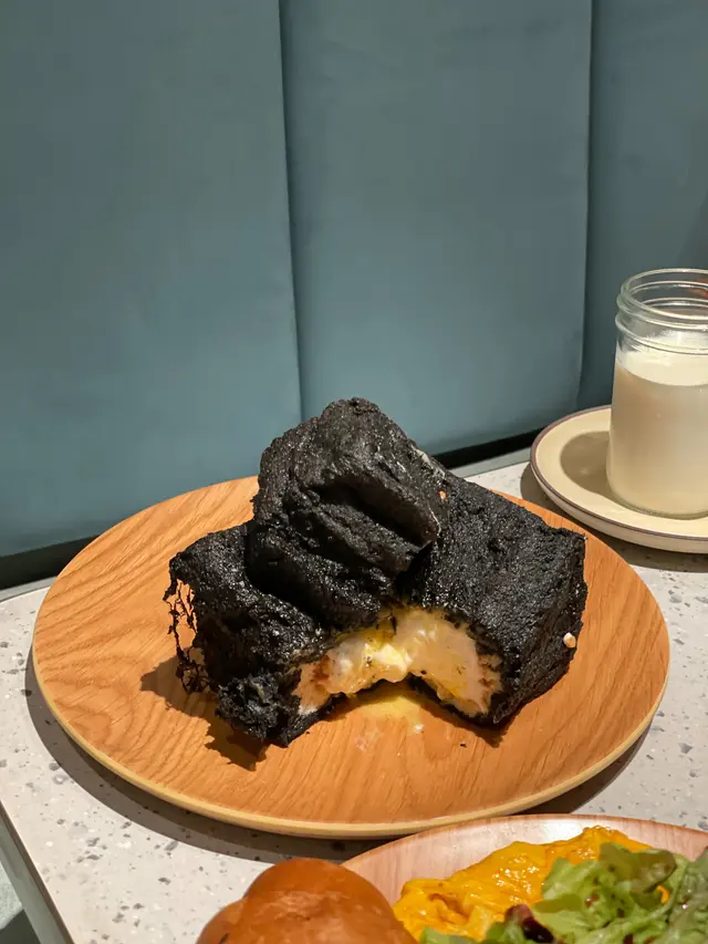 邪惡萬分的棉棉西多士,我自己一人獨享,真的頗有罪惡感呀! 竹炭厚多士,口感鬆軟且有彈性,夾著棉花糖和花生醬,配搭新穎。
