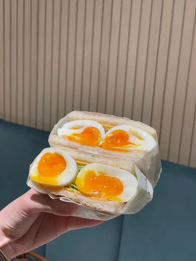 對於蛋控來說,這個三文治真的非常吸引! 半熟蛋滑嫩有光澤,如果芝士溶化就更完美啦。