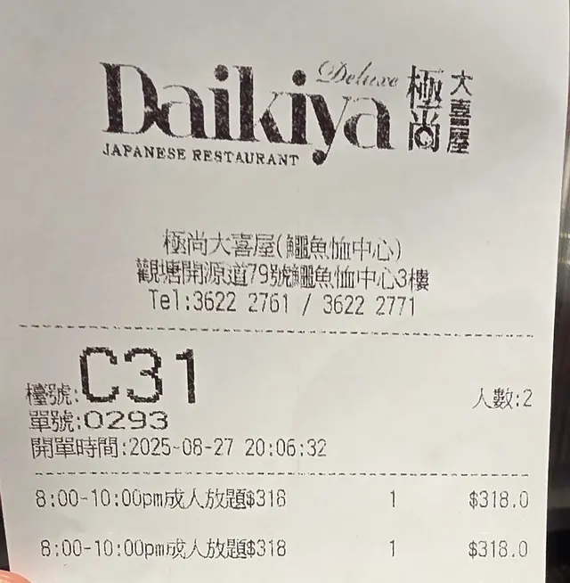 每人$318(另收加一) 可任吃兩小時,絕對值回票價