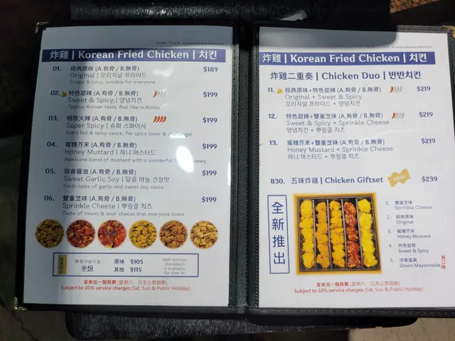 Menu顯示為新出推介, 包括五種不同味道的炸雞, 包括原味, 甜辣醬, 雙重芝士, 洋蔥蛋黃和 蜜糖芥末。每款雞塊有六件, 總共三十件其實蠻多的! ☺️ 所有雞塊都外微脆內嫩滑, 肉汁未有太多, 雙重芝士大概加了糖霜, 味道帶點甜, 朋友比較喜歡芝士醬多於芝士粉; 甜辣醬甜味比較重; 洋蔥蛋黃在味道和質感上都比較像黃芥末, 五款味道中還是蜜糖芥末最好 😊