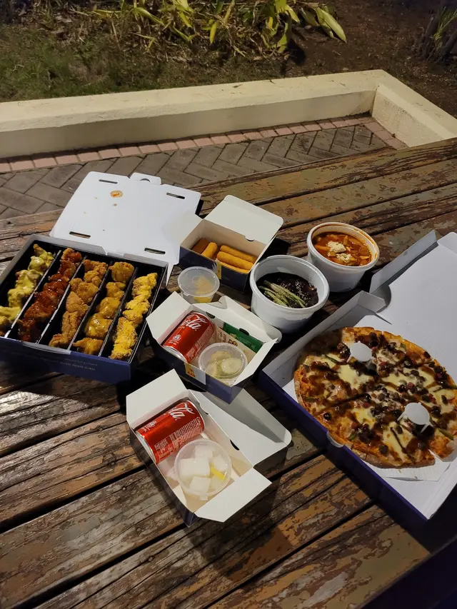 沒想到炒年糕竟然是湯年糕的, 年糕軟糯, 配料非常特別, 除了煙肉更有草菇 😝 味道基本上跟甜辣炸雞差不多, 有點偏甜, 雖然面層有芝士粉, 攪拌後已經嚐不到任何芝士味。