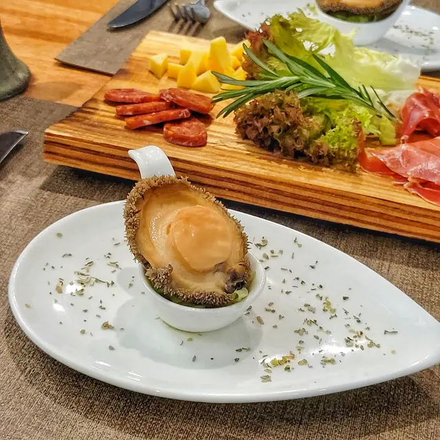 這份前菜擺盤的骰精緻,醬油漬入鮑魚,肉質保持鮮嫩有咬口,旁邊有點香草和刁草,碰撞出神奇的火花🔥