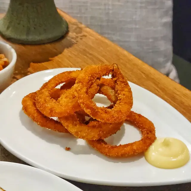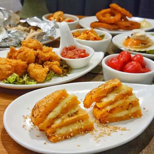 煎炸類方面有炸雞、脆炸法式洋葱圈和芝士泡菜煎餅,炸雞比較似炸雞粒,食落幾香口🥨洋葱圈先攪碎再塑型,幾有硬脆感,芝士泡菜煎餅係最佳作品,將每塊煎餅煎得細細,中間夾住拉絲芝士,邊位幾酥脆,值得encore👍