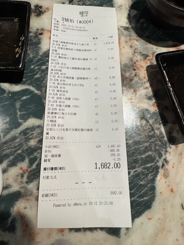 *連同原價加⼀服務費*