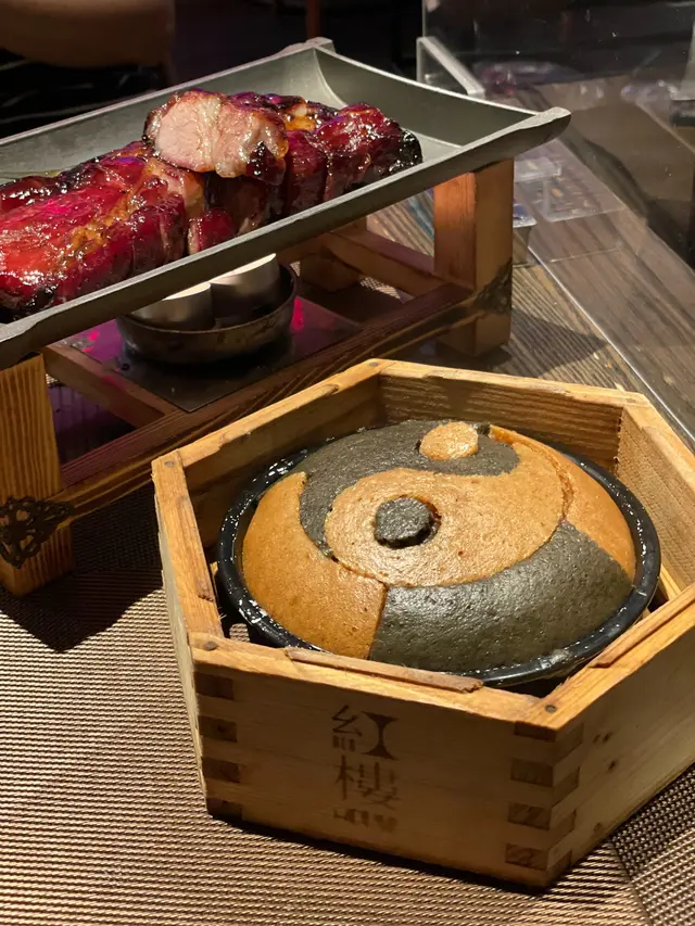 紅樓的招牌 太極馬拉糕,賣相好吸引呢! 盡現中國風的馬拉糕,用蔗糖和芝麻造成,兩色配搭,有趣特別。馬拉糕蒸發得宜,鬆軟可口,但芝麻味不太濃,濃一點更好呀。