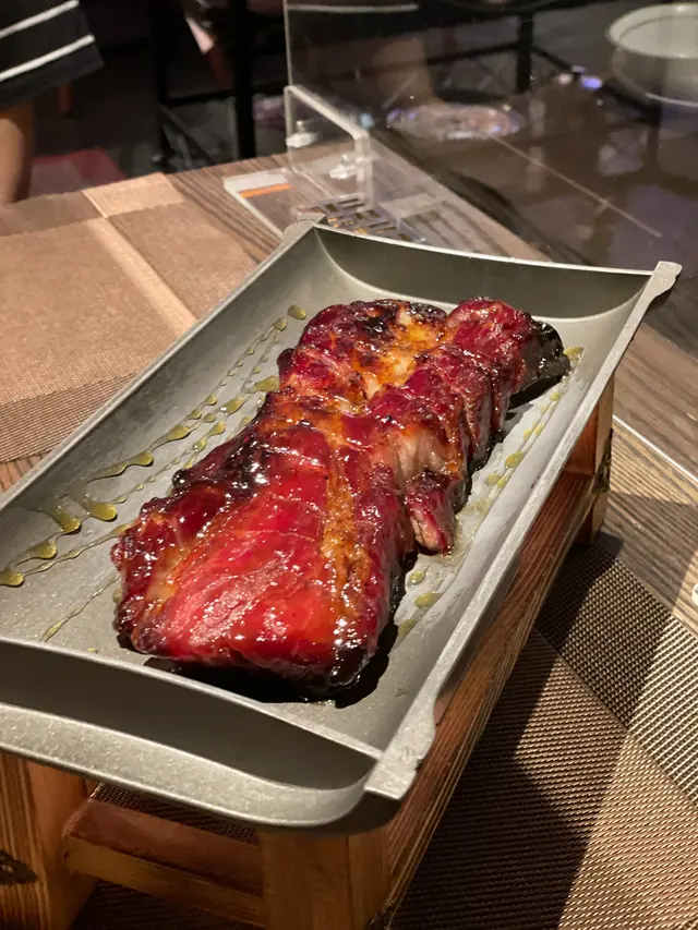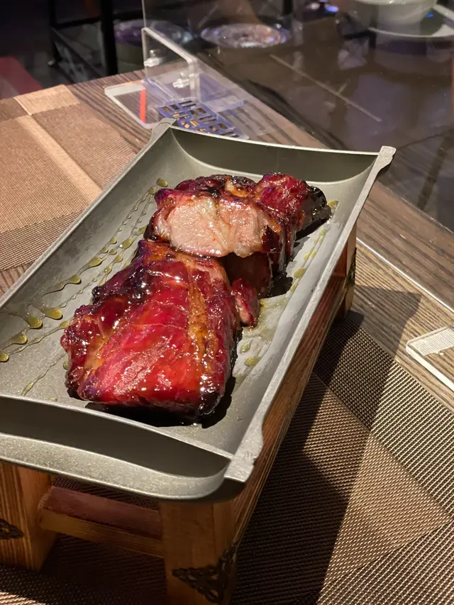 明爐蜜汁叉燒,傳來香噴噴的香甜味道,口水要流出來啦! 厚切叉燒,用黑豚肉造成,肥瘦相間,肉質非常腍嫩,不愧為廚師推介菜式呀! 值得大家試試呀!
