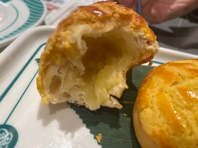 菠蘿包入面的芝士熱辣辣時,可以拉到絲,芝士味濃厚,與菠蘿包意外匹配,味道香甜,口感軟熟。表面的菠蘿皮金黄色香脆,豐富了口感。