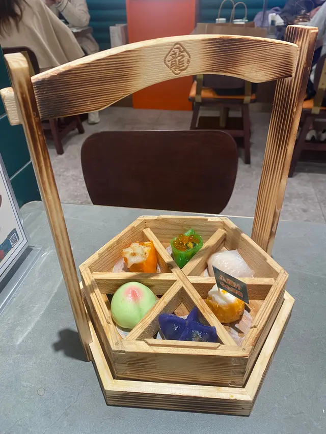 酸菜魚鳳眼餃、蟹粉菠菜香蝦餃、筍尖蝦餃皇、鹹蛋黃墨魚燒賣、松露野菌晶瑩餃和斑蘭麻蓉桃子,一個價錢可以試哂六款特式點心,少見既新派創新點心,值得一試。