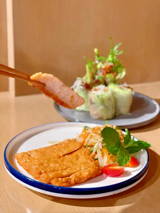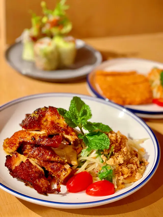 烤雞用了3小時slowcook方法去煮,烤得剛剛好外皮香脆,入面肉嫩又juicy,加上用上越式香草醃製,食落更惹味,而且仲用上無激素雞。加上越式沙律配菜,去油解膩。