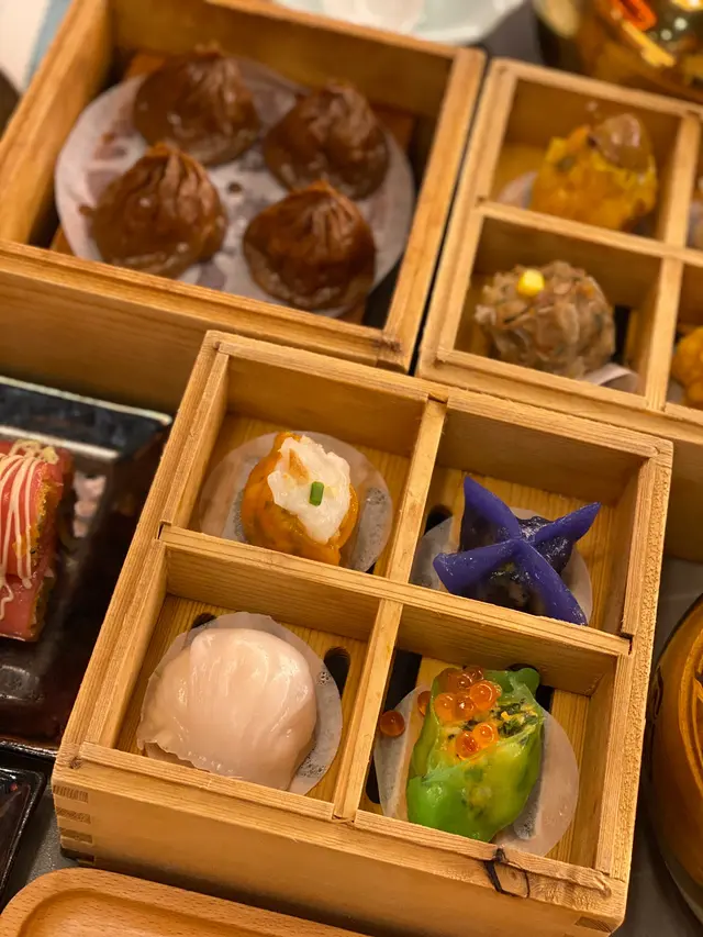 一盒四款的餃子,可以一次過試曬唔同既口味。包括以下四款:筍尖蝦餃皇、酸菜魚鳳眼餃、松露惹菌晶瑩餃、蟹粉菠菜香蝦餃。