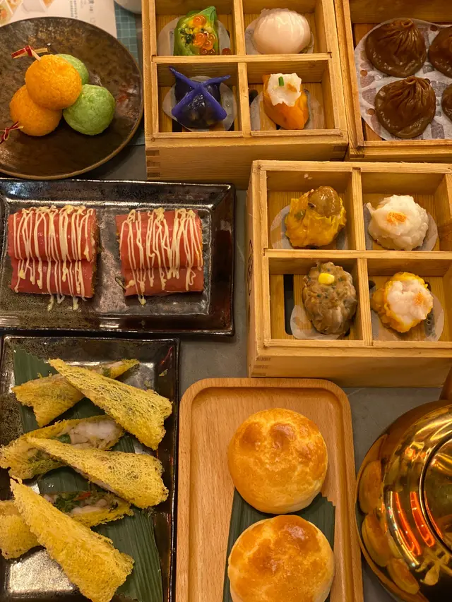 我食左蟹粉菠菜香蝦餃和松露野菌晶瑩餃。