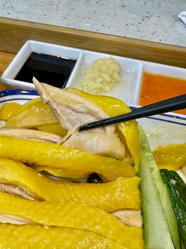 雞件去骨上碟,皮薄略帶啫喱感,肉質嫩滑,份量都幾足,啖啖肉,油飯粒粒粒分明,帶微微雞油香,配搭嘅三色醬(薑蓉、甜豉油、辣醬)點少少已經惹味,唔會蓋過雞味