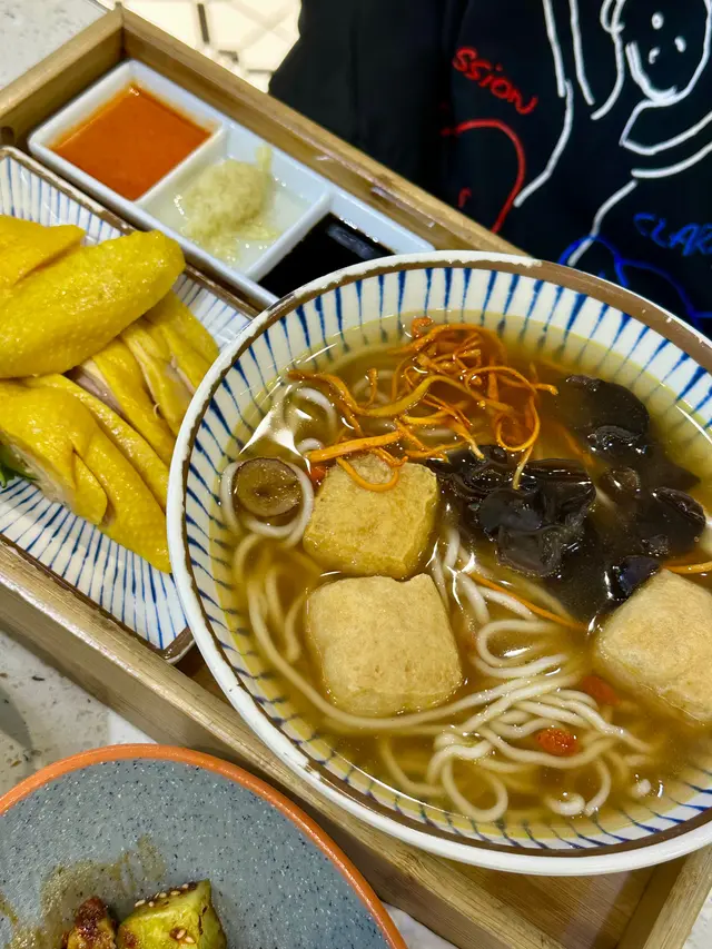 藥膳湯底清澈,味道溫和,入口暖身,湯中有蟲草花、豆卜同木耳,手工麵幼而有彈性,雞肉同樣保持嫩滑,冬天食會幾舒服