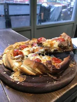pizza餅底變成爽脆蓬鬆的酥皮,入口更有層次感,牛油香味極濃,芝士可以造出拉絲效果,肉丸口感紮實不鬆散,配上酸甜多汁的車厘茄,令人胃口大開