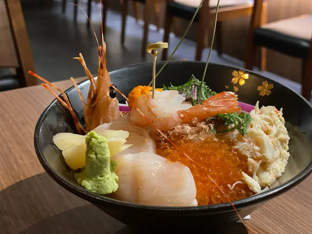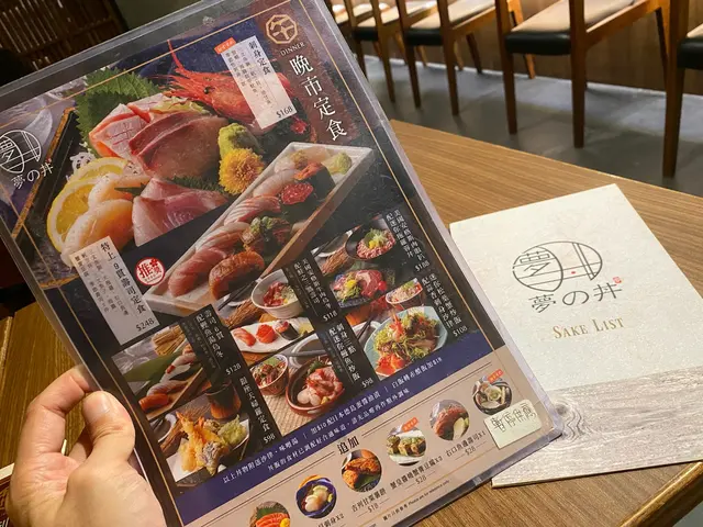 夢之丼有三文魚蓉、三文魚子、帆立貝、牧牡丹蝦、🍤海膽、松葉蟹、左口魚裙邊,仲有一杯少少的橙醋🍊可以加入丼飯,就甘飲一啖味道都好清新,容易入口。賣相非常吸晴,食材新鮮,大家都讚不絕口,所有的食材都非常配合,特別一讚松葉蟹非常鮮甜,三文魚蓉司傅都加以調味,食材完全不吝嗇,絕對再有下次!😋