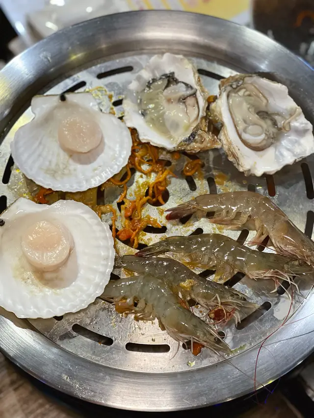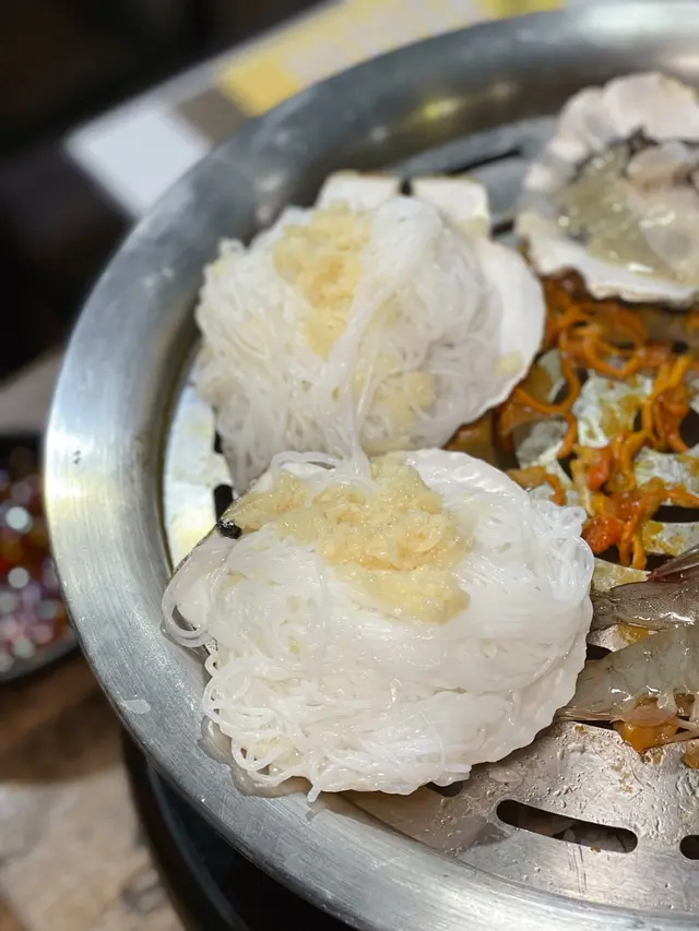 日本元貝都夠大隻,風神爸喺自助吧拎咗啲粉絲同埋蒜蓉放埋一齊蒸,自製粉絲蒜蓉蒸扇貝😚