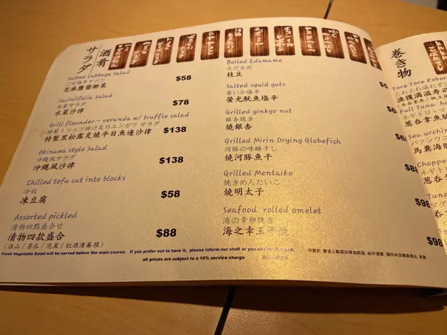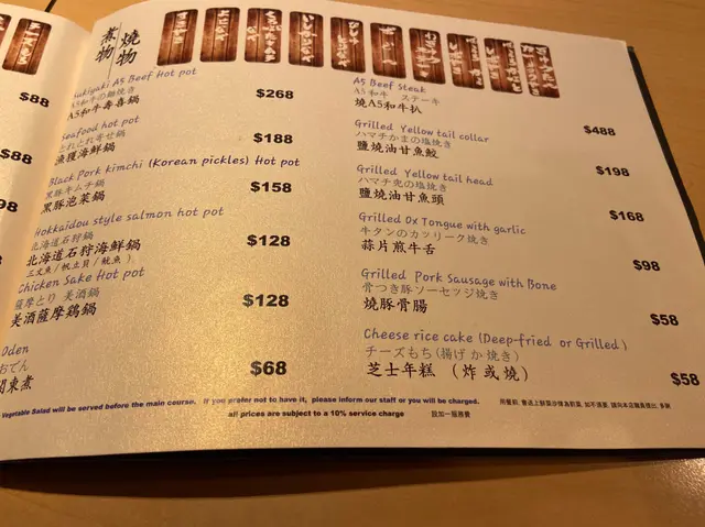 這裏餐點有好多選擇,以浜燒、刺生為主,加上沙律、酒肴、卷物、揚物、煮物、燒物、食事和甜品等。