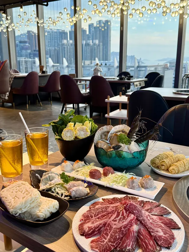 喺旺角都可以一邊望住日落海景一邊打邊爐🌅 真係好幸福啊♥️呢個二人套餐啱晒情侶 /朋友上嚟望住靚景嘆火鍋💖依家係openrice 訂台仲有優惠🤭
