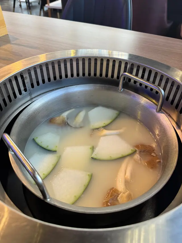 湯底奶白色 入口鮮甜,材料有鮮甜冬瓜、大大粒瑤柱同金華火腿,湯底真係好有驚喜停唔到口 夏天冬瓜當做特別好味!建議喺未開始打邊爐之前已經要飲返幾碗湯👍