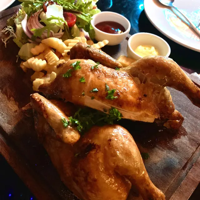 燒春雞配薯條 - 原隻雞燒得剛好,最欣賞個薯條熱辣辣剛剛炸氣😍