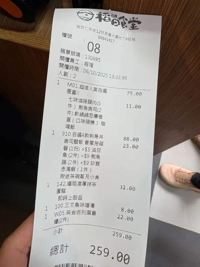 七味燒豬頸肉雖然得五件,但全部都大大條好厚肉,咬落爽口唔會韌亦唔會太油;轉咖喱飯唔使加錢,日式咖喱甜甜地仲有大量蔬菜粒!劍魚壽司以非連鎖街坊店嚟講算唔錯幾鮮甜;軟綿綿忌廉卷蛋冇得自己揀味,出咗原味軟綿綿忌廉幼滑好好食