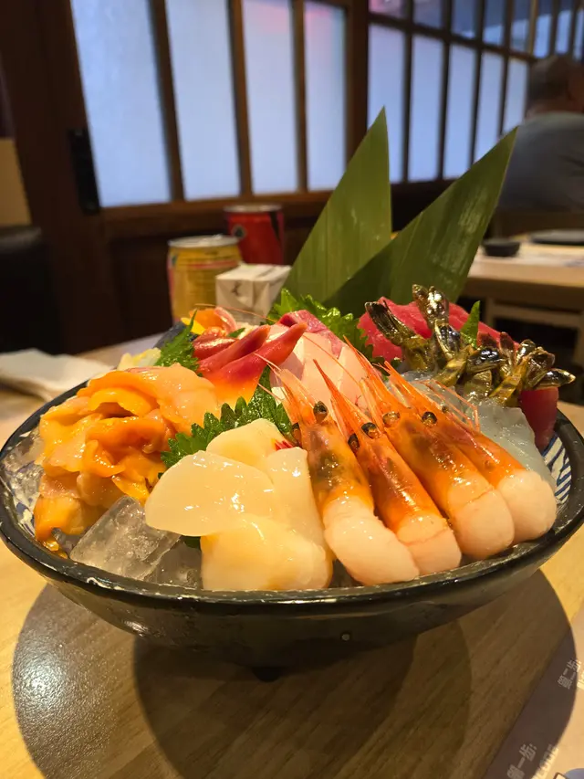 三文魚,希靈魚,赤蝦,鮑魚,魷魚。刺身非常新鮮,份量厚切,帶子彈牙又鮮甜,赤貝爽口,刺身