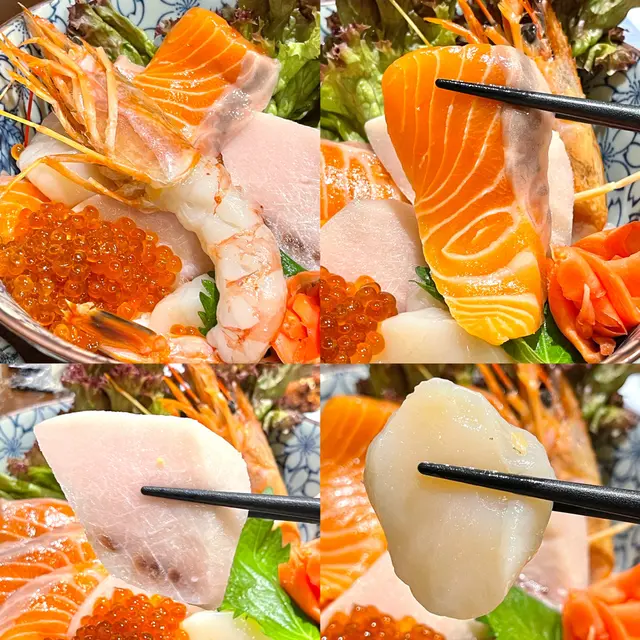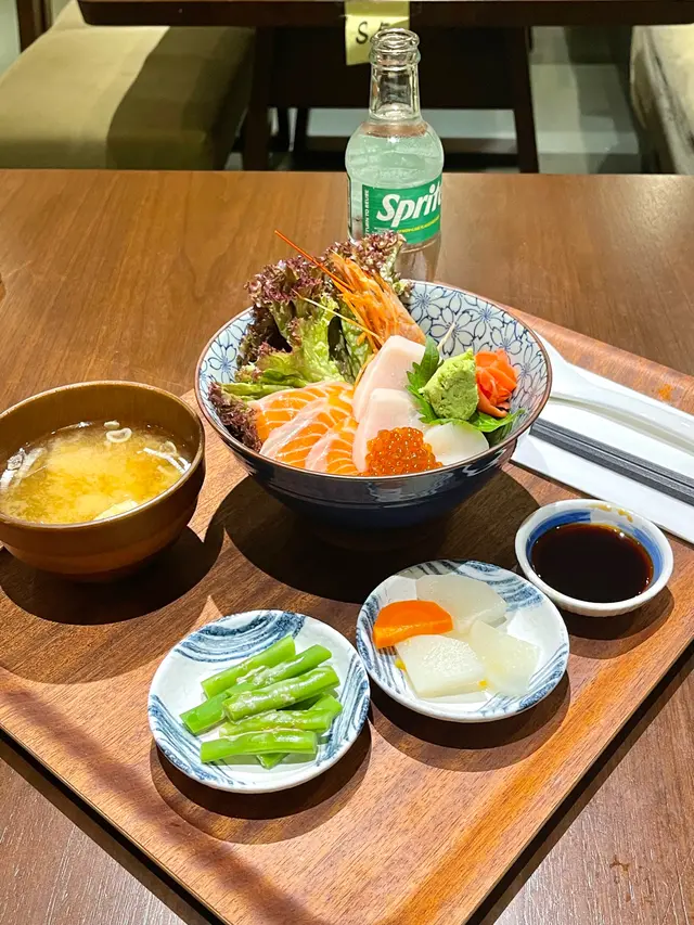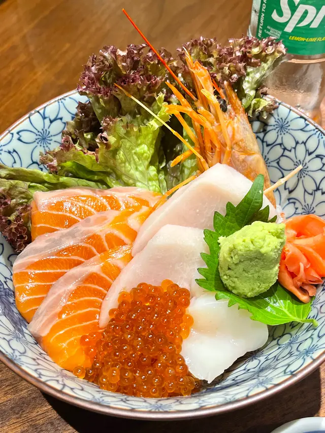 日作五品丼:丼飯採用新鮮厚切的刺身,包括三文魚、劍魚、帶子、赤蝦和三文魚籽等高級食材,魚生份量豐富多於飯,口感鮮甜厚實。米飯粒粒飽滿,口感Q黏且愈嚼愈香。