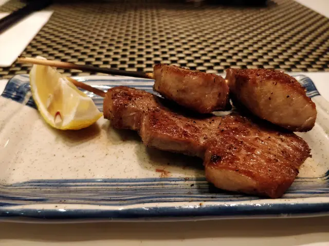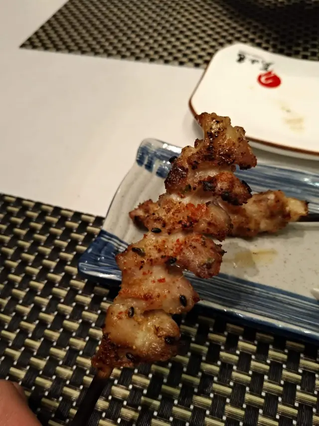 別少看兩串的牛舌,吃後的飽肚感十足。厚切牛舌有五毫字的厚度,即點即燒自然香氣滿溢,牛舌只以鹽巴和黒椒簡單調味,但海鹽卻完美展現牛舌的風味。由於牛舌厚度十足,火候控制得宜就可做到7成熟的效果,咬開肉身只見淺粉紅色,軟熟的肉質實在一絕!!