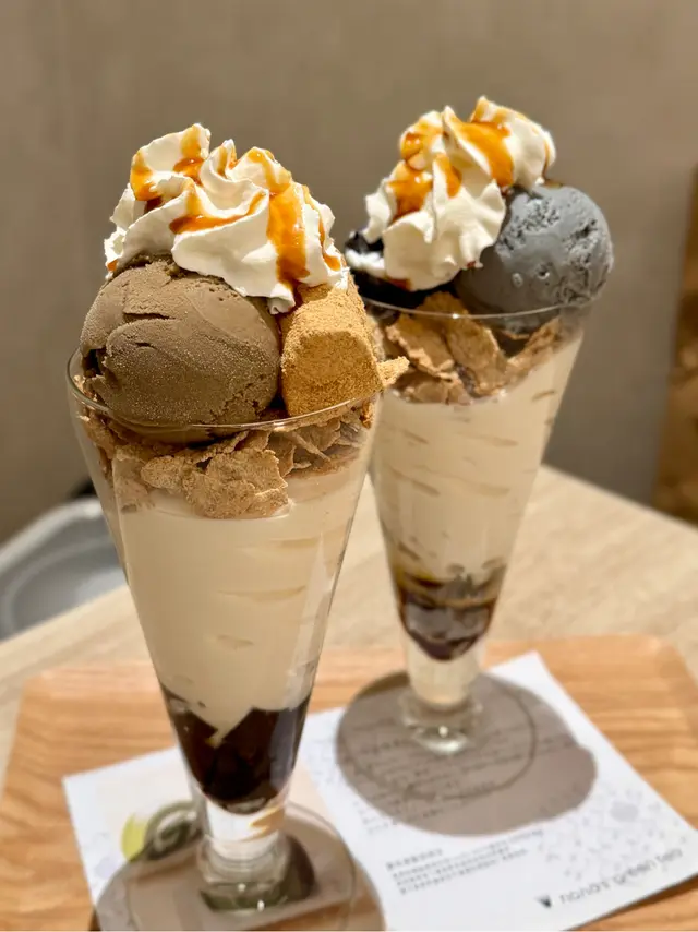 層次感十足芭菲杯,黑芝麻醬香醇濃厚,搭配白玉、脆片和冰淇淋,口感豐富,芝麻控絕對滿足🖤🩶。