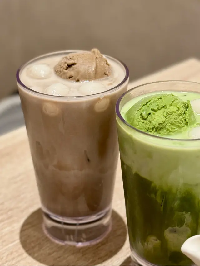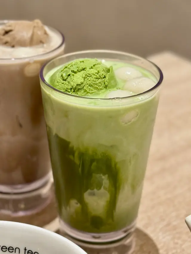 經典抹茶牛奶飲品,加入軟糯白玉&綠茶雪糕,抹茶微苦回甘,雪糕綿密🍦🍦。