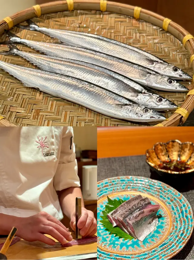 當晚刺身有煙燻銀鱈魚、活赤貝、秋刀魚等。師傅更即場將原條秋刀魚去骨起肉,配薑蔥豉油,口感爽彈唔腥。