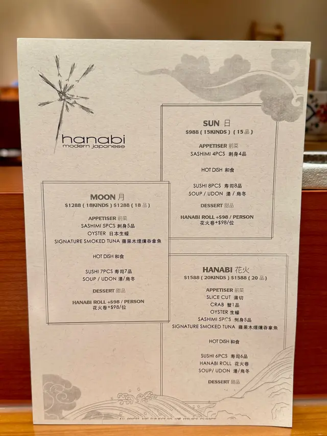 呢款最高級別套餐有20品料理咁多😍,有前菜、薄切、蟹1品、生蠔、刺身5品、蘋果木煙燻吞拿魚、和食、寿司6品、花火卷、湯/烏冬、甜品/生果。