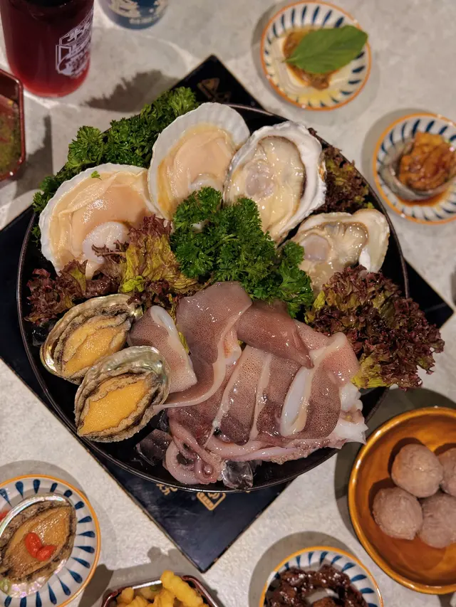 成個套餐仲包括有日本黑毛和牛A4+、伊比利亞黑毛豬梅肉、鮮甜鮑魚/鮑魚三吃。仲有澳洲M9和牛牛丸2粒、海鮮拼盤、同埋新鮮鮑魚任食!