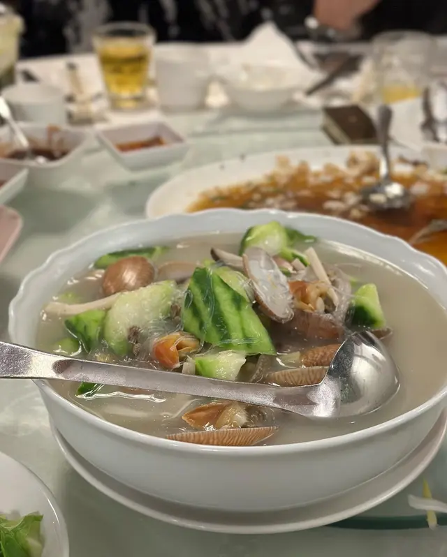 Most impressive dish would be deep-fried fish, skin fried perfectly to a golden color, crispy outside and tender inside🎣 next up is the garlic steamed scallops with vermicelli, the garlic flavor holds onto the large scallops really well🫶🏼 fat for the roasted goose were evenly distributed, with crispy shiny red skin thats not too greasy, each bite is pure bite of happiness😋 sour cabbage and sliced sea bass soup is very appetizing, we managed to finish it all within 10mins😂 shrimp taste bomb with their signature spicy chili sauce🌶️ the vermicelli fuzzy melon clam pot is also noteworthy, soup is MSG-free, goes perfectly with a bowl of rice🍚