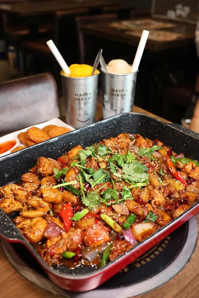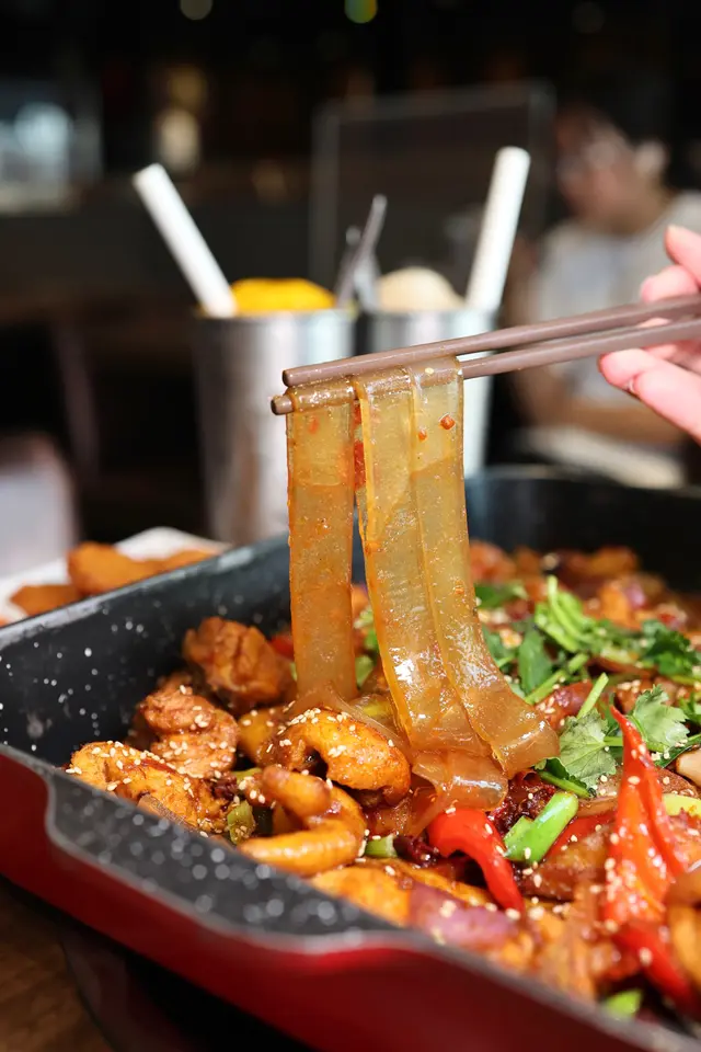 呢個係新推出嘅菜式🤩份量超多,雞件鋪滿成個盤🥰我哋揀咗小辣,醬料惹味,辣度啱啱好😋另外,大盤雞底部仲有吸收晒個汁嘅煙韌薯粉🤤