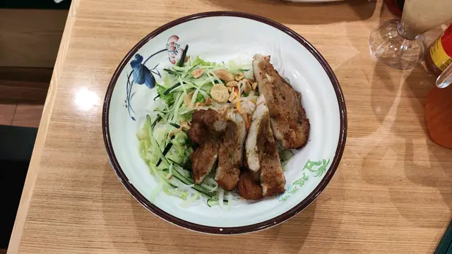 豬扒撈檬:豬扒煎完唔會好油膩,惹味香口,檬粉好爽滑,好鍾意佢個魚露撈檬汁,酸甜適中,配上清爽酸蘿蔔、炸蒜、青瓜絲、香蔥,口感十足。