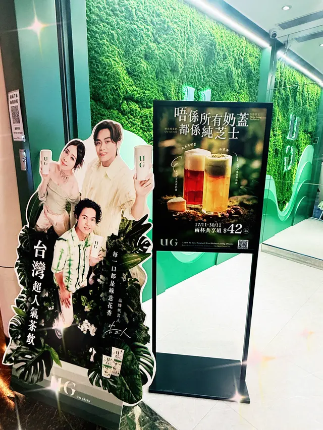 去朗豪坊看電影,被戲院旁這家滿是綠油油的茶飲店吸引!原來是台灣過江龍UG Tea,告五人代言+台灣本地天然茶,品質穩定又高效~當然去八卦一下他們的茶飲