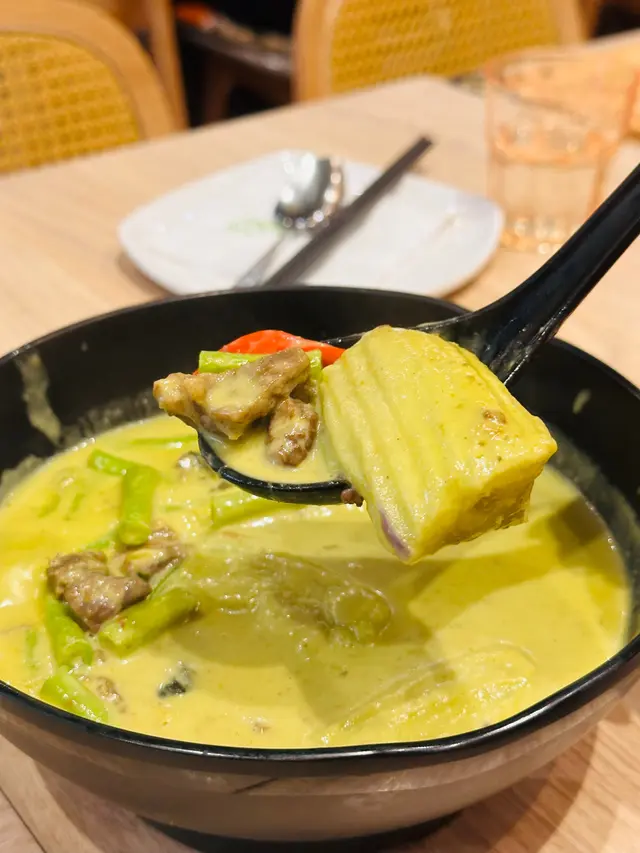 跟住就係青咖喱牛腩,呢個菜色真係好正!牛腩煮得軟滑入味,青咖喱醬香濃,帶有一點微辣,配上椰漿嘅香味,食落去好有層次感,再加埋一碗白飯,簡直係完美搭配😋