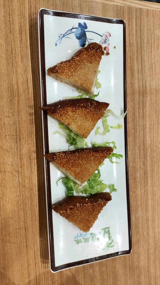 越式蝦多士:三角形狀既多士,外表炸得金黃酥脆,內裡既蝦膠鮮甜,入口順滑,加埋上面既芝麻,味道有驚喜。