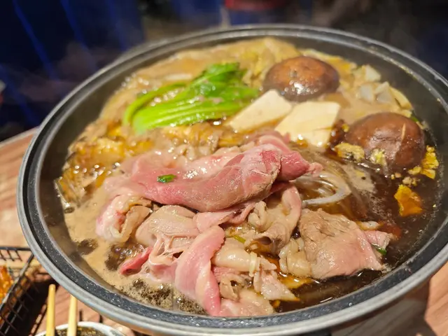 至於牛肉壽喜燒就誠意十足!個鍋份量夠2-3人share,牛肉片雪花靚,輕輕淖熟之後沾生蛋汁,滑溜得嚟帶甜香~ 湯底調得啱啱好,唔會太甜搶咗食材味。入面嘅豆腐、香菇、娃娃菜索晒湯汁,冬天食真係暖笠笠!唯一挑剔係牛肉可以再多兩片就完美啦~