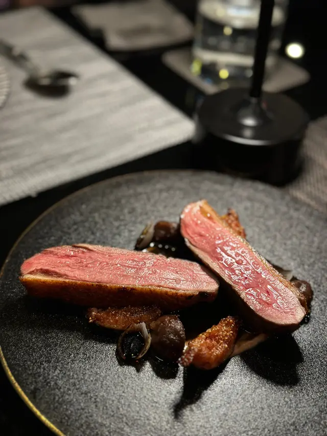 鴨胸顏色粉嫩誘人,散發著濃郁的鴨香,配上燒汁,厚彈多汁。搭配的焦糖無花果為菜品增添了甜美,而栗子的口感更完美地與鴨胸的肉感相互融合,令人回味無窮。