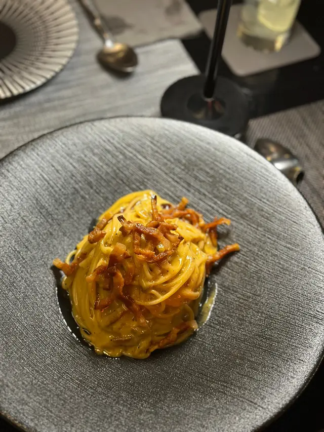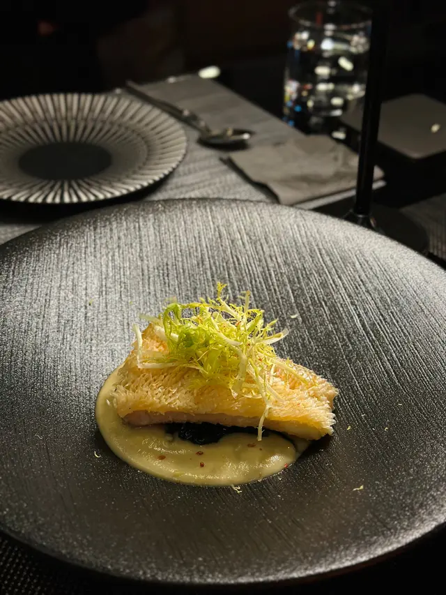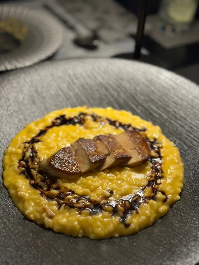 這道意大利燉飯呈現出迷人的橙黃色,讓人一眼就被吸引。搭配的黑醋散發著濃郁的香氣,為整體風味增添了層次。鵝肝較肥美,與南瓜的甜味相得益彰,讓每一口都帶着滿足感。