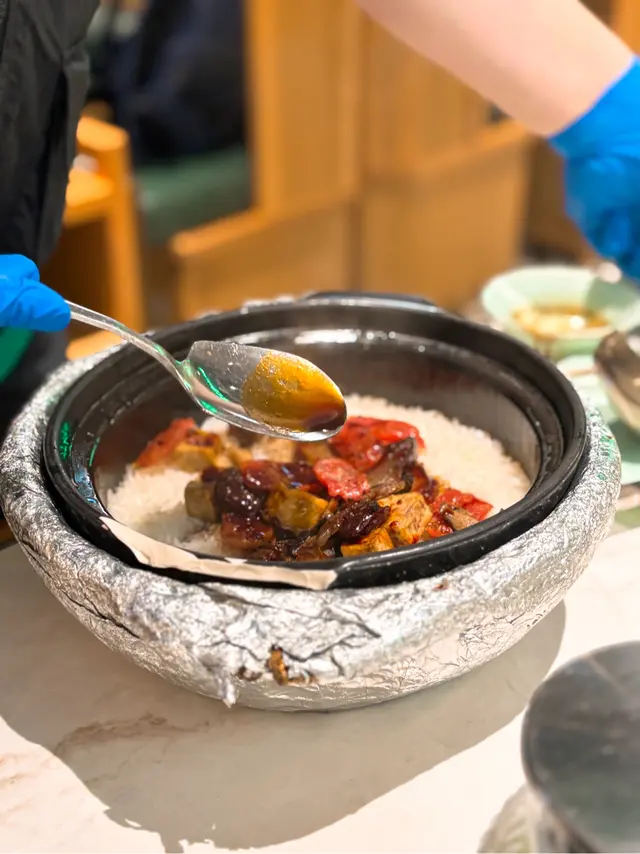 上枱香噴噴,加入臘腸、臘肉同芋頭在面頭同米飯一齊蒸熟,米飯充滿臘味嘅油香