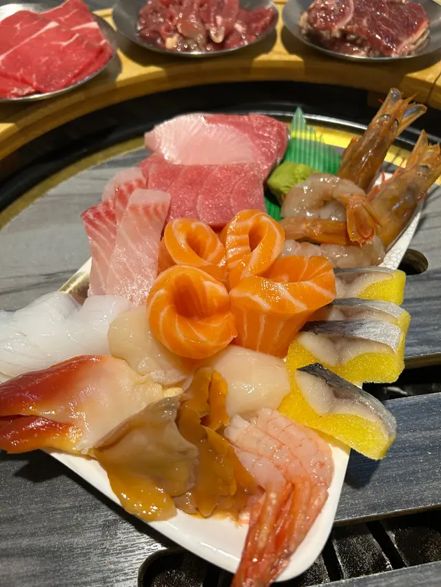 海鮮亦都有17款可以揀,當中令小編最有印象嘅就有海魷魚、魷魚鬚、墨魚咀同埋蜆,都係非常新鮮!!對於放題刺身,小編就覺得好有驚喜,因為完全冇諗過師傅竟然會有埋擺盤,大蝦、三文魚、帶子厚身鮮甜味十足🦐另外仲有小編最鍾意食嘅希靈魚,有咬口得來仲要係會有鮮味爆汁~同埋鍾意飲酒嘅朋友呢個真係非常之抵,嗰日飲咗六七支絕對可以回本🍸🥂