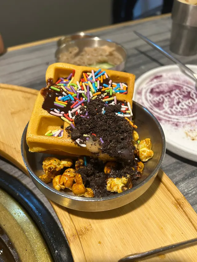 呢個價錢已經包咗18款肉類,當中有豬牛羊雞唔同款式~有10款唔同嘅牛肉,小編就比較鍾意安格斯封門牛,牛味重、又有少量嘅油脂分布,放題嘅質素絕對係高🐮仲有18款熟悉,包括韓式炸物、澱粉食品、韓式泡菜湯~另外亦都包括埋出面食物吧嘅爆谷、窩夫、大量蔬菜生果,其實單叫呢一個餐已經非常滿足🐽