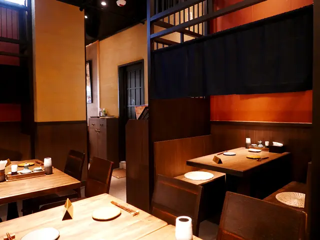 店內樓底夠高,充滿空間感,以木材元素打造深色系的神秘氛圍,並以橙紅及深橙用色,散發濃濃和風。