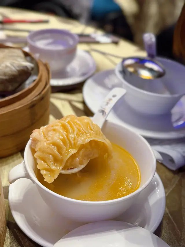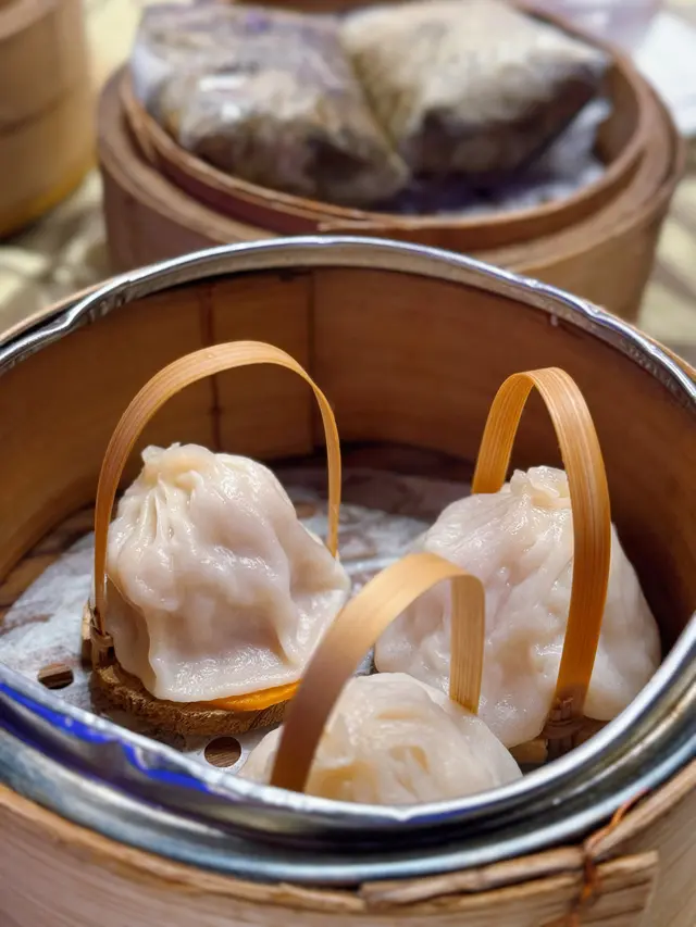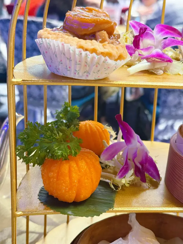 一上枱,成個港女酒店High Tea嘅鳥籠咁,勁浮誇!相機食先!入面有齊六款點心:蝦餃:皮薄蝦爽,合格以上;蟹籽燒賣王:啖啖肉,蟹籽卜卜脆,好食!雞粒鮑魚酥:幾得意,酥皮松化,上面粒鮑魚仔唔算好突出但夠曬睇頭;天鵝酥:真系靚到唔捨得食,入面系芋蓉,香口但略油;帶子鳳眼餃:幾鮮甜,賣相精緻;趣緻南瓜球:外脆內軟,南瓜味自然。$198食到咁多款,仲要款款都上得鏡,真系抵到爛啦!打卡同飽肚一次過滿足!