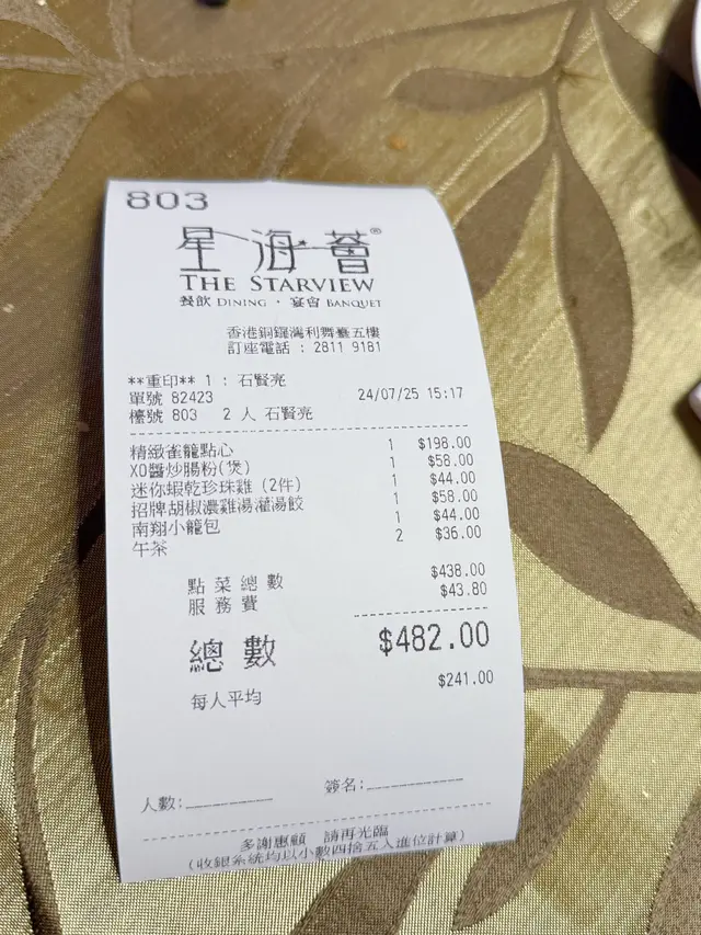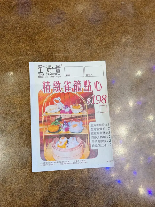星海薈最大賣點肯定系個雀籠點心:抵食又呃到like,點心整體質素OK。其他散叫有驚喜(珍珠雞)亦有伏位(腸粉太淋、灌湯餃穿底)。小籠包出場最浮誇!