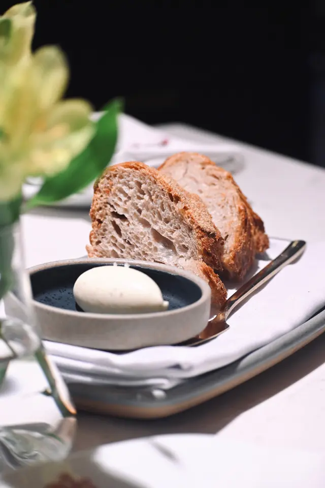 ▶︎ 入座先送上自家製酸種面包 外脆內糯微帶酸香
