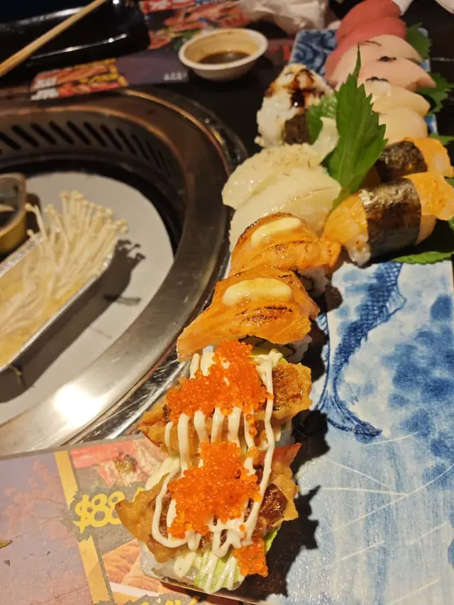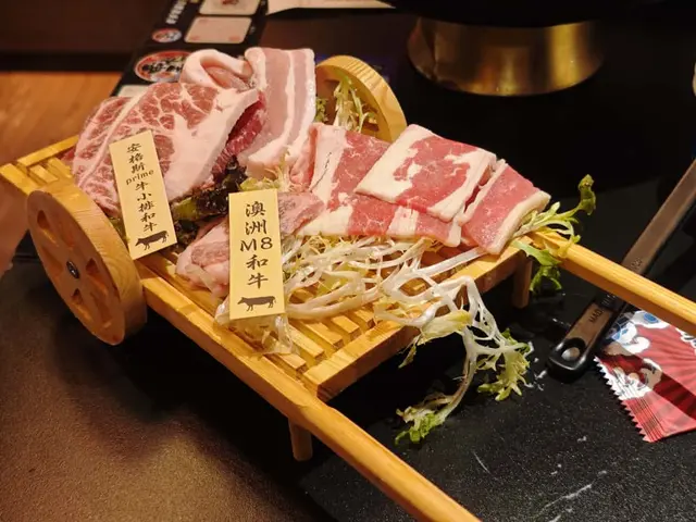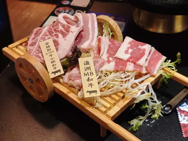 燒肉方面都好有驚喜!A4和牛、安格斯牛肩胛、豚肉、雞肉、蔬菜一應俱全。澳洲M8和牛,油脂豐富,入口軟腍牛味濃郁;安格斯牛肩胛肉質緊致有彈性,燒到微焦香氣十足🔥。燒烤爐加咗牛油紙,唔怕黐底,店員定時換爐紙,服務貼心又細心👏。